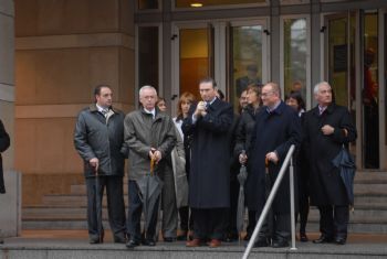 Ibarretxe abandona el Palacio de Justicia entre aplausos y gritos de apoyos de los ciudadanos